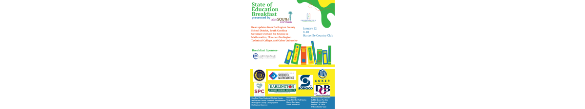 The breakfast will feature an update from Darlington County School District, Coker University, Florence-Darlington Technical College, and SC Governor's School for Science and Mathematics.