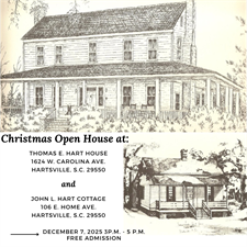 The Hart Cottage is located at 106 E. Home Ave., Hartsville, S.C. 29550.Fees/Admission