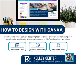 Learn how to utilize Canva’s designing tools to create professional marketing products, promotional items, and social media content through this free, hands-on workshop offered by the FMU Kelley Center. Registration is free and limited to 15 individuals per session.