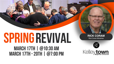 Spring into spiritual renewal with Rick Coram Ministries! Join us for a transformative Spring Revival starting Sunday, March 17th at 10:30 am, and continue the journey each evening through the 20th at 7 pm. Embrace the season of growth and revival with inspiring messages and uplifting fellowship. All are welcome to join us on this journey of faith and renewal!